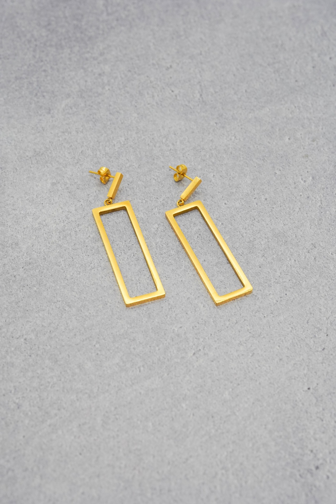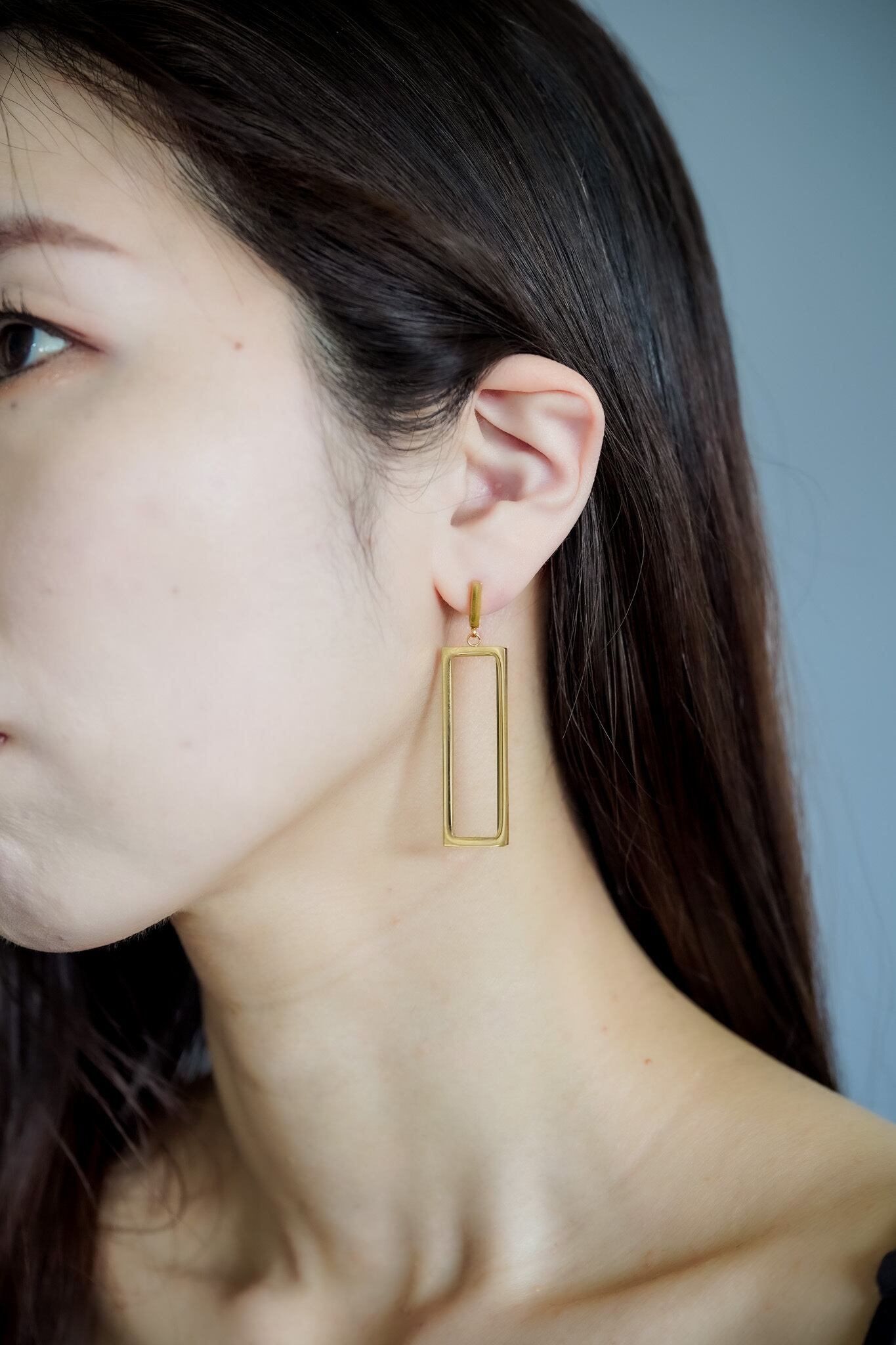 特徴的な長方形のレクタングルピアス。着けるだけで存在感があり、オシャレ感を演出します。