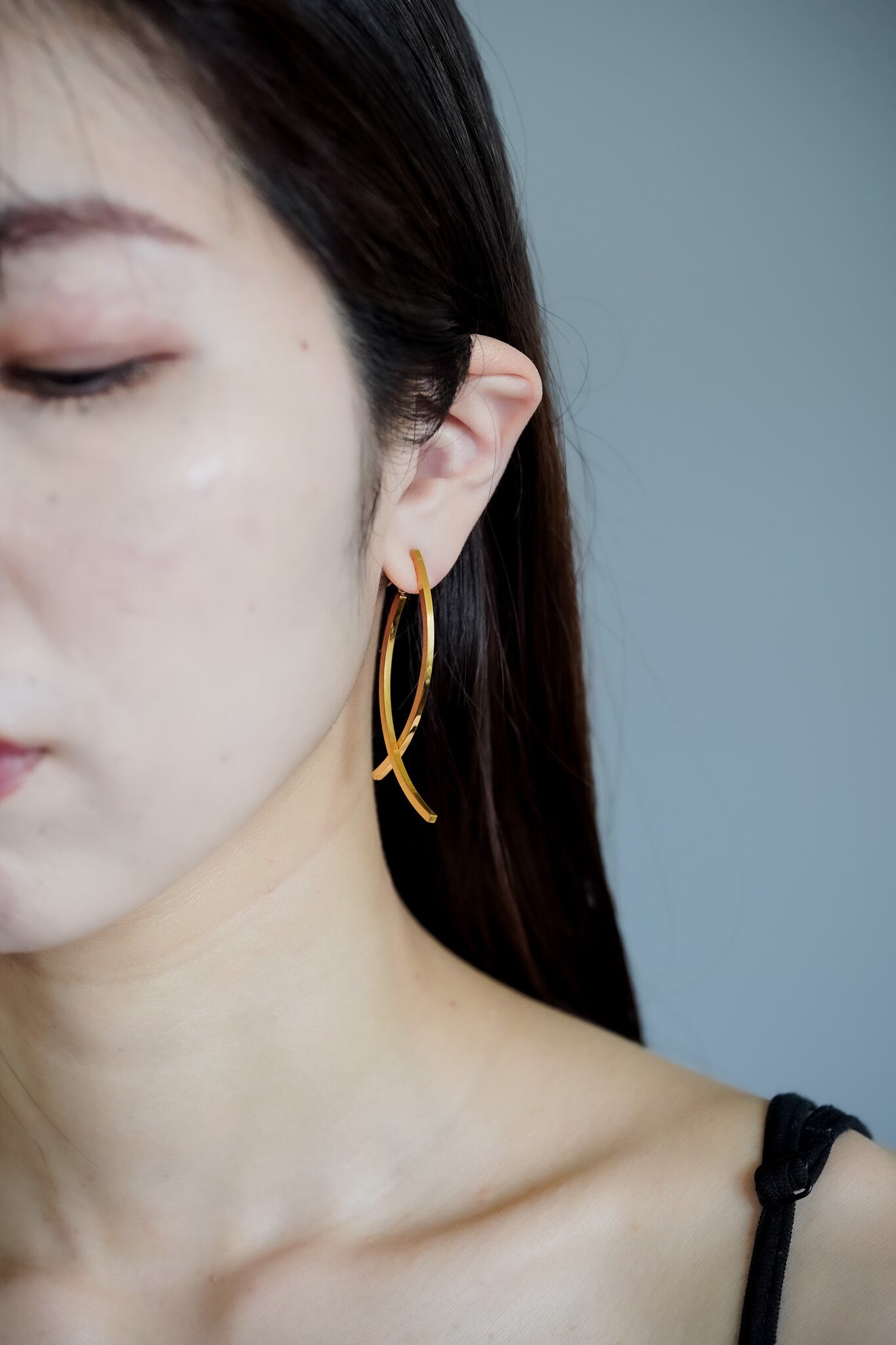 カーブしたスティックが2本ぶら下がるエレガントなピアスです。