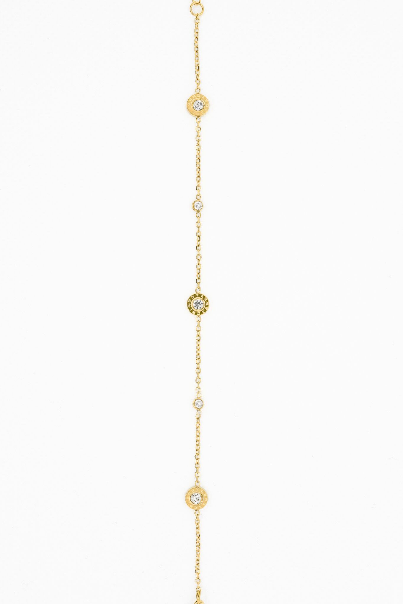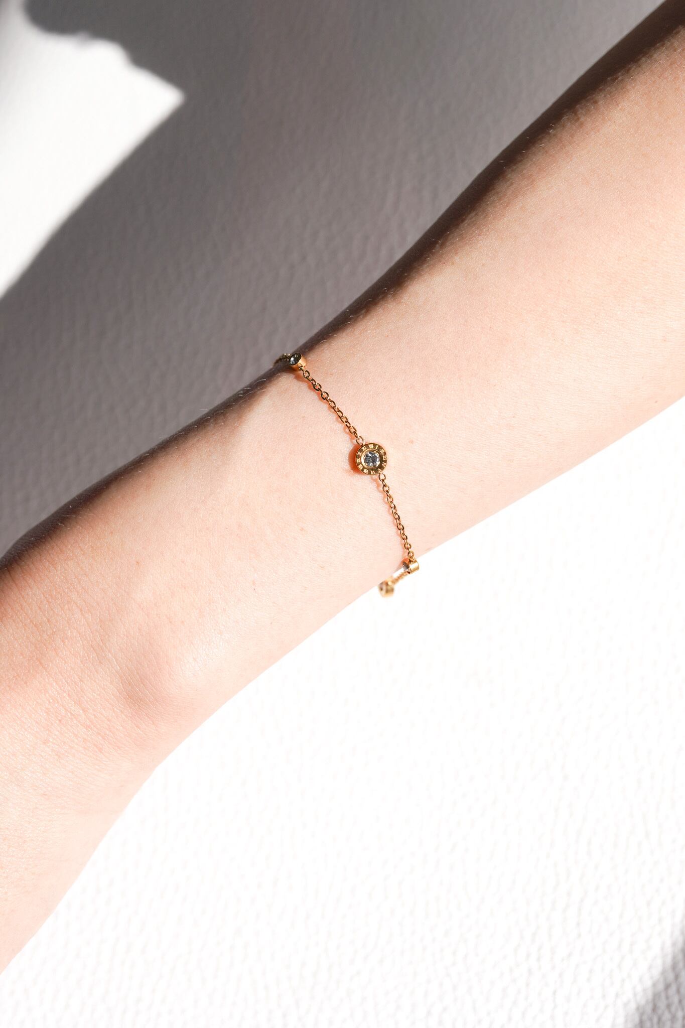 ジルコニアを囲うようにローマ数字が刻印された女性らしい華奢なローマナンバーブレスレットです。