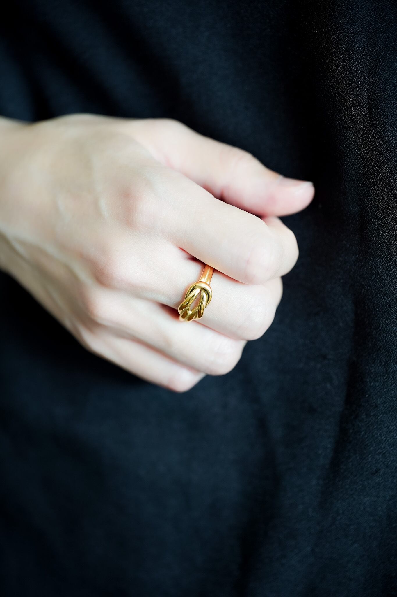 「絆」や「縁」を象徴する結び目のノットデザインリングです。