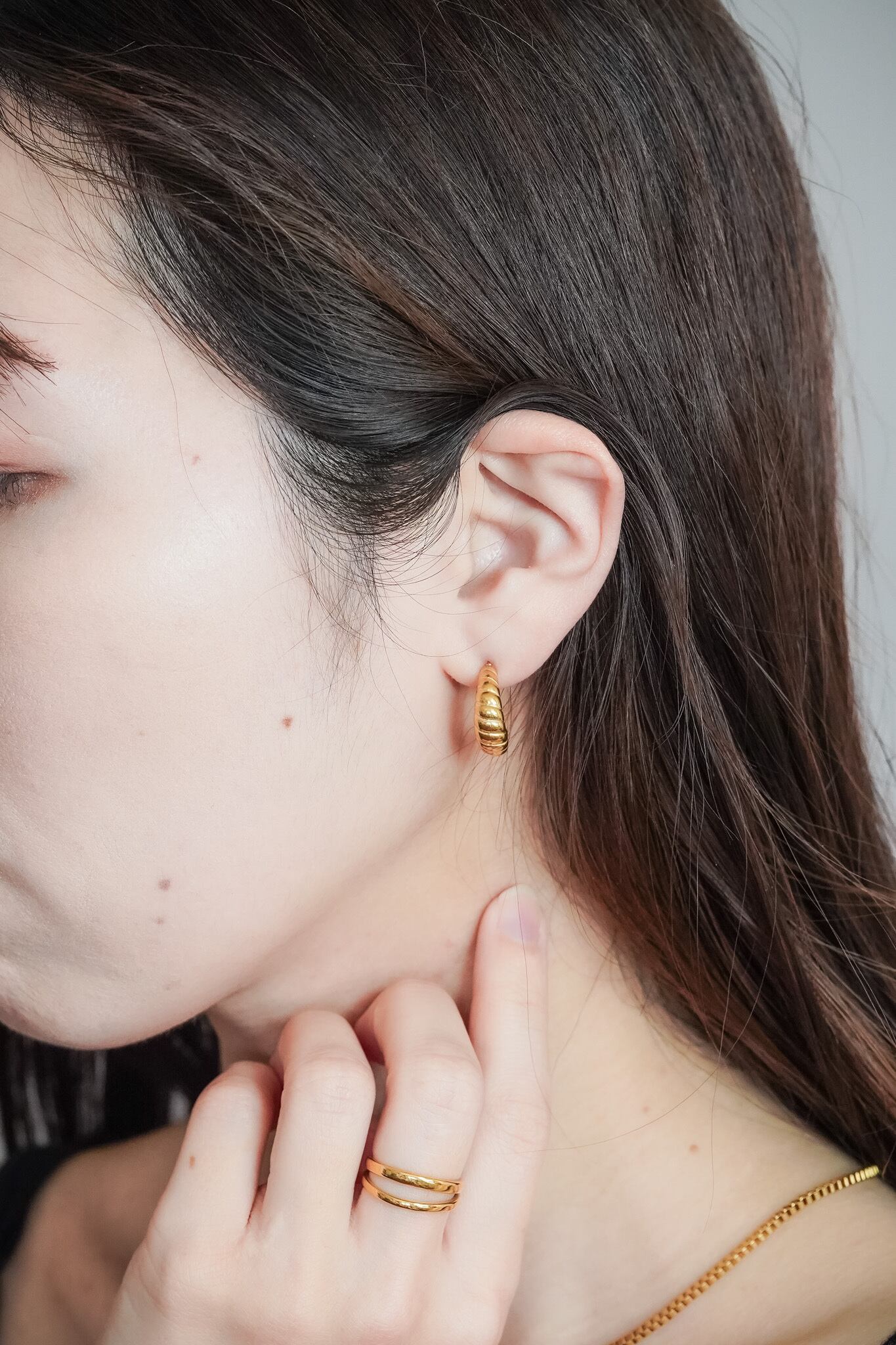 定番のフープにねじりを加えることで洗練された印象を与えます。